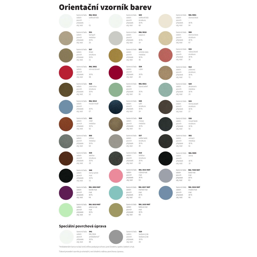 Vybranou povrchovou úpravu (viz vzorník barev ve fotogalerii) prosím uveďte v objednávce do poznámky (pod částí, kde zadáte svou adresu, je pole "Zadat poznámku pro prodejce").